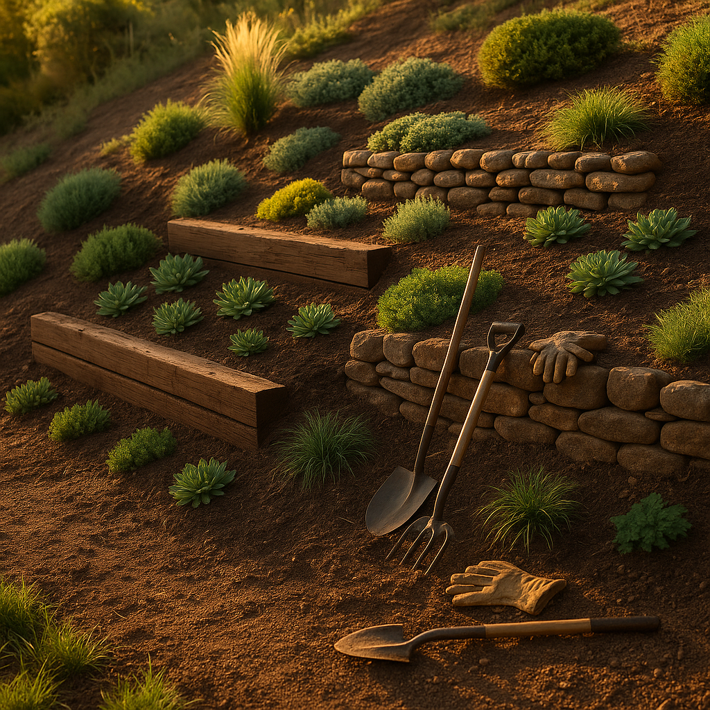 - Íngreme (30% ou mais): Precisa de degraus, suporte estrutural forte e controle de erosão.